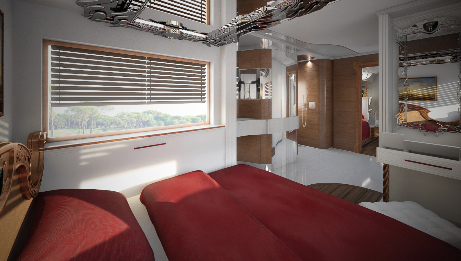 Begeisterung für wahre Exklusivität ist die erste Station auf einer wundervollen Reise mit Ihrem element - palazzo. Fahren Sie der Sonne entgegen und stellen Sie doch alles andere in den Schatten. Entspannen Sie mit Freunden bei einem guten Drink von einer der Bars auf der voll automatisch ausfahrbaren Flybridge mit Lounge Möblierung oder der einladenden Couchecke im Innenraum. Nightlife on board: erweitern Sie per Knopfdruck die Sofalandschaft in eine stylische Barmöblierung. So genießen Sie Ihre Privatparty auf zwei voll ausgestatteten Ebenen. Für den gemütlichen Rückzug oder die Fahrt mit Ihren Liebsten ist längstens gesorgt. Der herrschaftliche Schlafraum mit integriertem Badbereich offeriert besonders entspannte und wohltuende Erholung. |